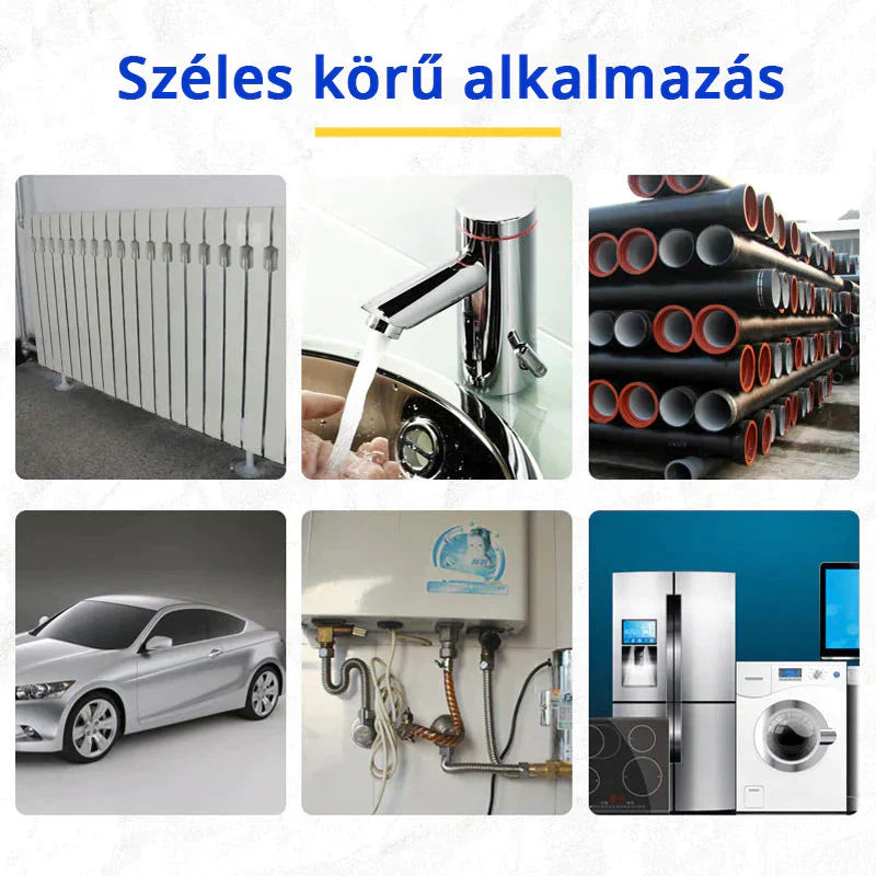 IronFixx™ makes metal repairs permanently strong and extremely durable – harder than steel. The powerful repair compound bonds, fills, and reinforces damaged areas quickly and reliably without the need for special tools. Ideal for professionals, DIYers, and anyone looking to permanently repair cracks, holes, or rust, whether indoors or outdoors.