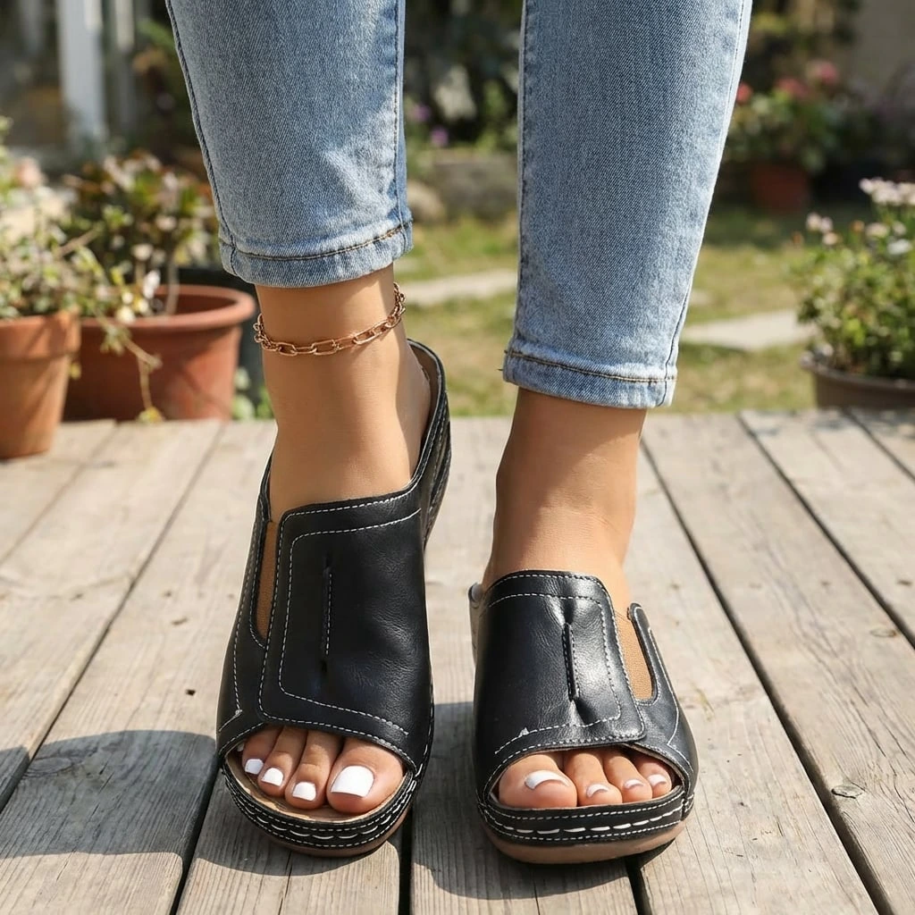 • Clean Open-Toe Design: Simple, breathable shape that stays polished and easy.